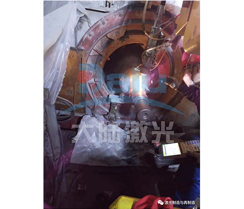 施工人員群策群力,根據(jù)現(xiàn)場(chǎng)實(shí)際工作環(huán)境,準(zhǔn)備材料、制作工裝,搭建施工平臺(tái),安裝調(diào)試設(shè)備,僅用3天時(shí)間就順利完成了軸頸的激光修復(fù)工作,加工后精度及尺寸,滿足圖紙?jiān)O(shè)計(jì)要求,并一次交檢100%合格。
