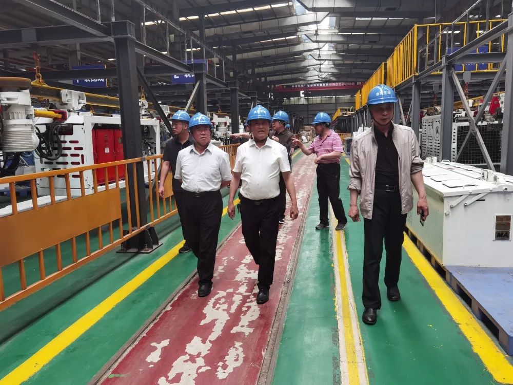 在肖董事長的陪同下唐副局長一行先后參觀了企業(yè)榮譽(yù)展廳、數(shù)控自動化生產(chǎn)線、機(jī)器人自動焊接生產(chǎn)車間、礦用單軌吊試驗(yàn)區(qū)、湖南省礦山裝備工業(yè)互聯(lián)網(wǎng)智能管控平臺等項(xiàng)目。