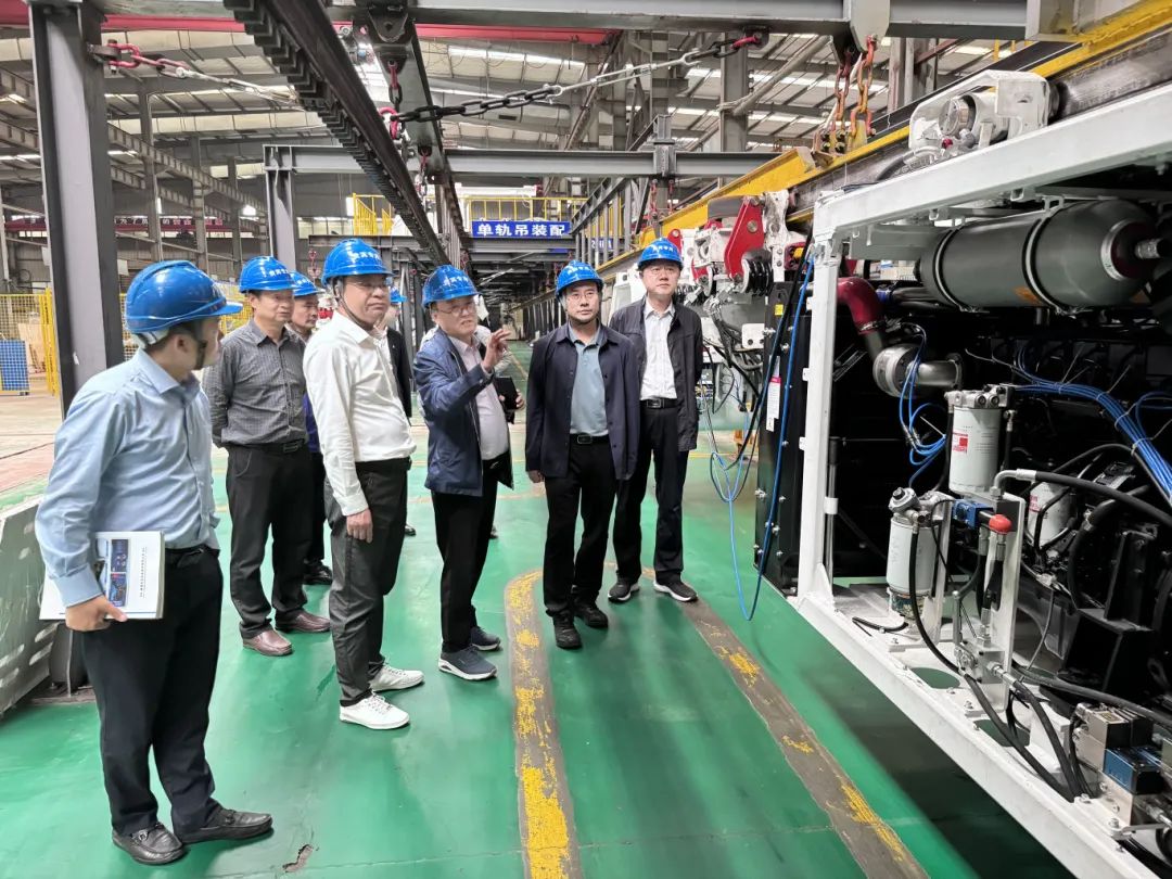 座談會上,肖董事長向梁副市長一行介紹了企業(yè)基本情況、技術創(chuàng)新能力、產品市場前景、發(fā)展規(guī)劃等情況。梁副市長對【恒欣股份】二十多年來深耕礦山軌道運輸智能裝備給予了高度肯定。隨后,在肖董事長的陪同下,梁副市長一行先后參觀了企業(yè)榮譽展廳、數控下料車間、數控自動生產線、礦用單軌吊試驗線等區(qū)域。在參觀礦用單軌吊試驗區(qū)時,肖董事長向梁副市長一行詳細介紹了礦用單軌吊的產品類型、AI視頻、無人駕駛等技術優(yōu)勢,并重點講解了【恒欣股份】單軌吊優(yōu)于同行業(yè)產品的安全指標和性能。