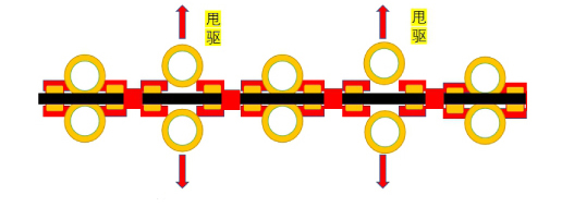 通過控制夾緊油缸松開驅(qū)動(dòng)部上兩個(gè)夾緊在軌道上的驅(qū)動(dòng)輪以實(shí)現(xiàn)甩驅(qū),通過控制設(shè)定數(shù)量的驅(qū)動(dòng)部甩驅(qū)以減少能耗和物耗。