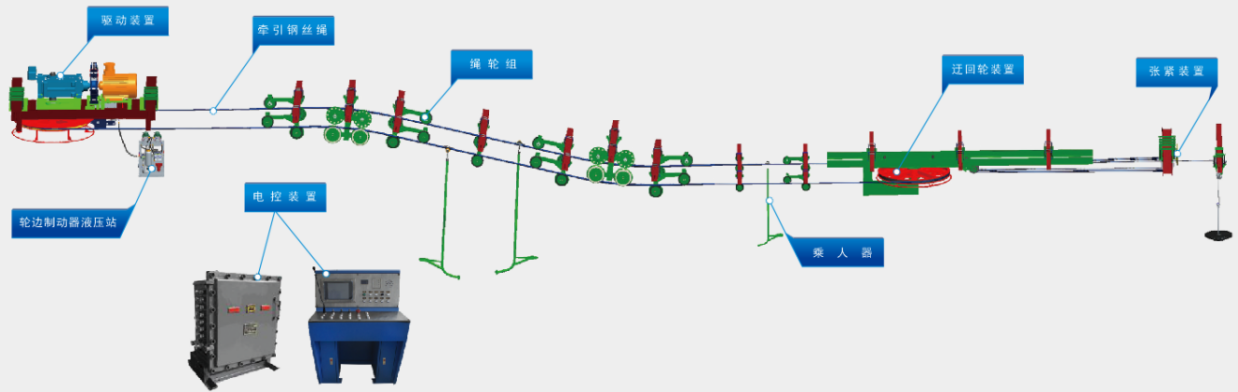 液壓驅(qū)動(dòng)式架空乘人裝置,采用雙輪驅(qū)動(dòng)的主要目的是增大圍包角和摩擦力。適用于長(zhǎng)線(xiàn)路和大負(fù)載、高速架空乘人裝置,可以實(shí)現(xiàn)無(wú)級(jí)調(diào)速、軟啟動(dòng)、軟停車(chē)功能。