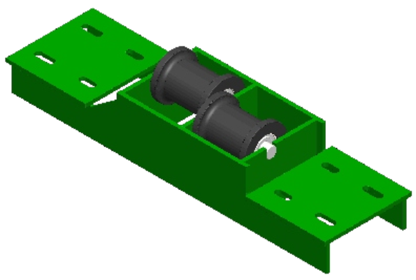 為適應(yīng)起伏變化的巷道,避免鋼絲繩摩擦巷道底板,在線路中的平巷或上變坡點(diǎn)安裝托繩輪組,起到減小磨損,延長鋼絲繩使用壽命的目的。根據(jù)鋼絲繩在軌道的布置方式分為雙繩托繩輪組和單繩托繩輪組兩種。