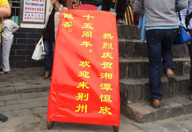 身處荊州曾經的歷史遺跡,感嘆“湘潭恒欣”文化十五載。從十幾人到如今的幾百人,從默默無聞到如今響譽行業(yè)。我們和諧共進,努力拼搏,正如這毎到一處都有的"慶祝湘潭恒欣成立十五周年,歡迎來到荊州做客!”它們也將載入“湘潭恒欣“的百年文化!感動并幸福著!